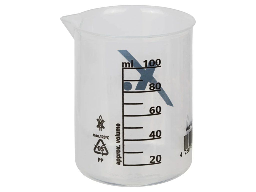 Odměrka je vyrobená z odolného průhledného PP plastu, takže dobře vidíte hladinu kapaliny i jednotlivé rysky. Díky stupnici po 10 ml až do objemu 100 ml snadno odměříte potřebné množství produktu pro mixovací lahve, postřikovače, napěnovače i kbelíky.